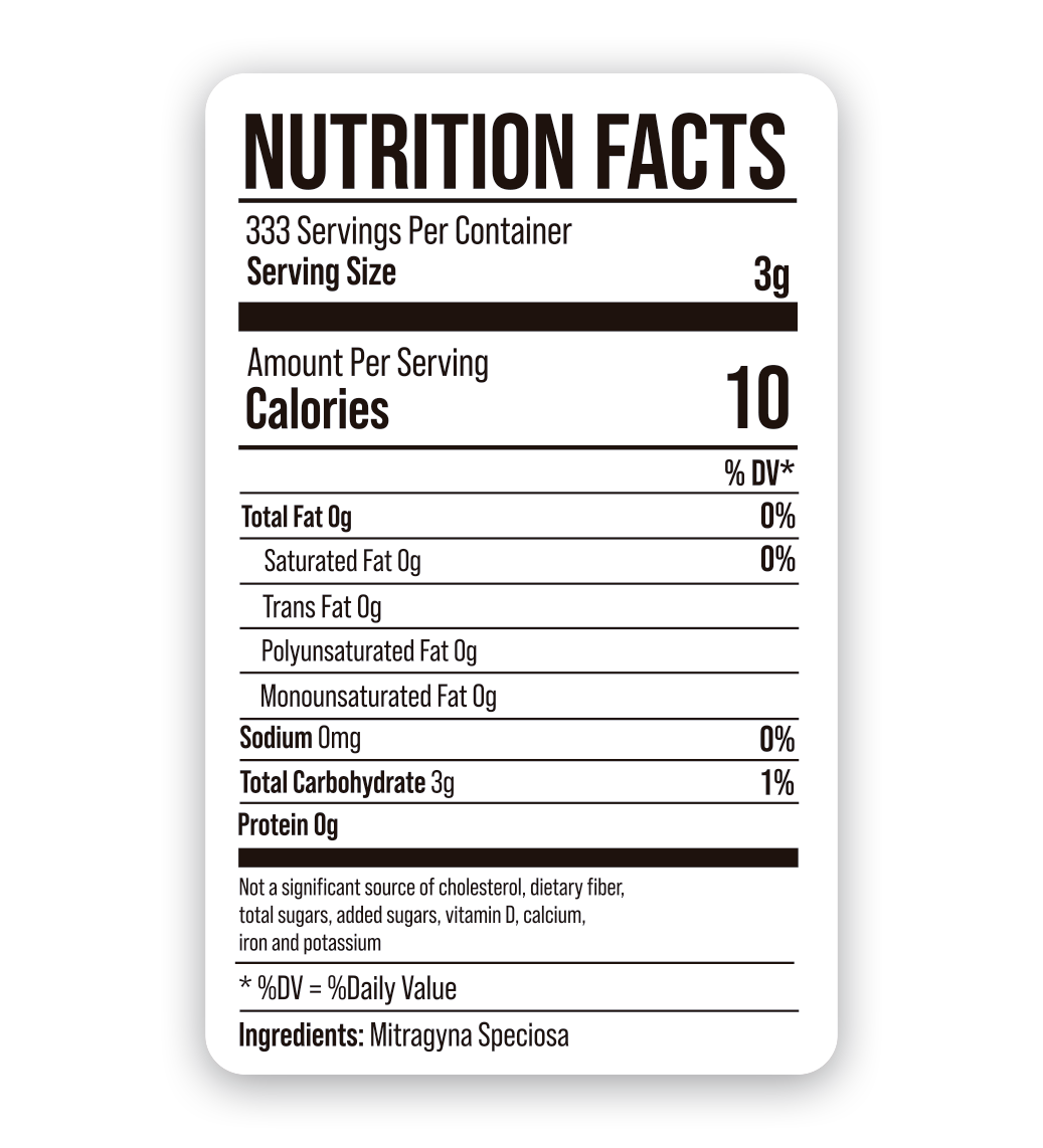 Warning: Do not use if you are pregnant or nursing. Do not use if you have, or have had, a substance use disorder. Kratom may be habit forming. Consult a physician prior to usage and if you have any heart disease, liver disorder, high blood pressure, or medical condition or take medication. Kratom may interact with certain medications, drugs and controlled substances; do not combine with alcohol, medication or drugs (controlled or otherwise.) A kratom product label is prohibited from making any therapeutic claims unless approved by the United States Food and Drug Administration. Discontinue use and seek medical attention if you experience any adverse effects. Keep out of reach of children. The sale or transfer possession of kratom to another person under 21 years of age is prohibited in the state of Georgia.