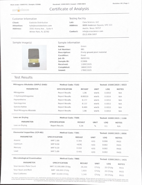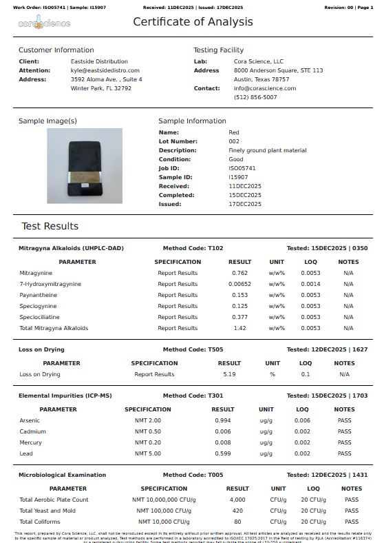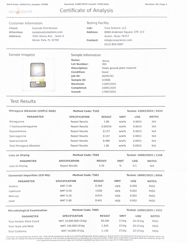 WHITE KRATOM COA Download PDF RED KRATOM COA Download PDF GREEN KRATOM COA Download PDF YELLOW KRATOM COA Download PDF